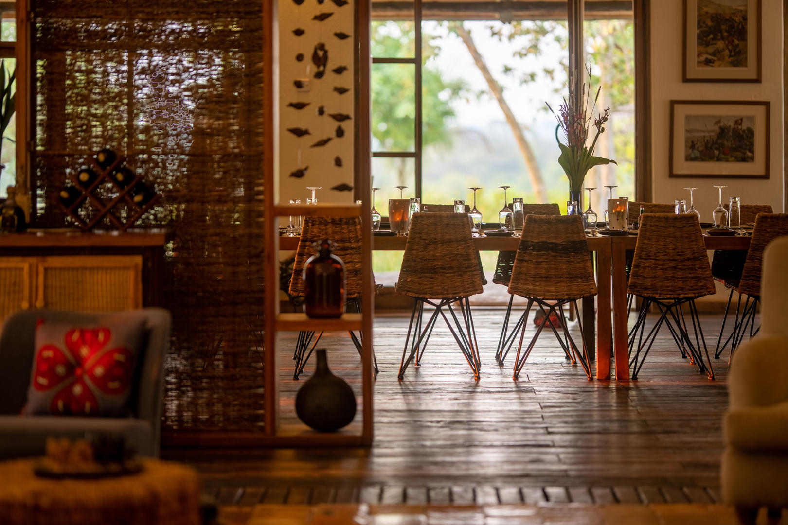 The restaurant and the lounge at Kyambura Gorge Lodge are open towards a sundowner deck, the beautiful gardens and nearby swimming pool. The kitchen features international and local cuisine, prepared with local ingredients and organic vegetables from the lodgeβs own garden.