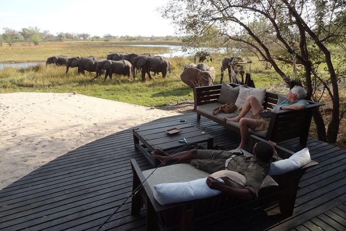The central main area of the camp boasts with a large, comfortable sitting area with separate dining room. It has wonderful views of the spillway and the wildlife that is attracted to it to drink. There is a discreet sunbathing area with its own plunge pool to jump into when the going gets a bit too hot! In addition, there is a separate viewing platform which overlooks a deep pool where the elephants come to drink. The communal areas and one of the five tents are specifically designed to cater for disabled guests.