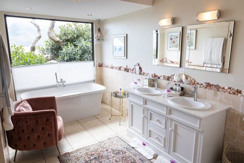 ThisΒ is the perfect destination for visitors wanting to relax right beside the ocean - either at the start of their holiday or at the end after a few days on safari. Though it is not close to the city centre - 25 mins drive to the city and the Waterfront, its unique location means that you are well placed to explore the many attractions of the Cape Peninsula as well as Kirstenbosch gardens, the picturesque village of Hout Bay and the Constantia wine estates all nearby. Alternatively you donβt have to stir from this oasis - just lie by the swimming pool, or enjoy a drink on the terrace listening to the gently lapping waves.