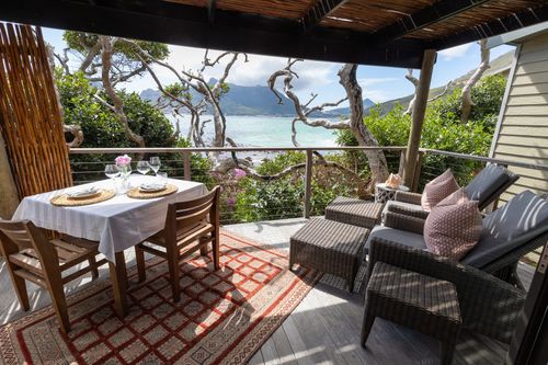 Tintswalo Atlantic has an exceptional location in Cape Town. Situated on the water's edge just off the picturesque Chapman's Peak drive on the Cape Peninsula. This ultra-stylish and romantic retreat looks out over Hout Bay towards the towering peak of The Sentinel, bathed in pink and purple at sunset. Nestled unobtrusively between the Atlantic and the slopes of the Table Mountain fynbos reserve, Tintswalo Atlantic offers absolute seclusion and relaxation, with the ocean literally a stone's throw away from the pebbled beach! Whale watching is an effortless activity between July and November.